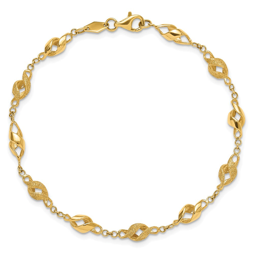 10k Polished and Lasered Spiral Link 7.25in Bracelet