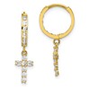 10K CZ Cross Hinged Hoop Earrings
