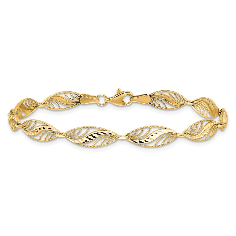 10k Filigree Diamond Cut 7.25 inch Bracelet