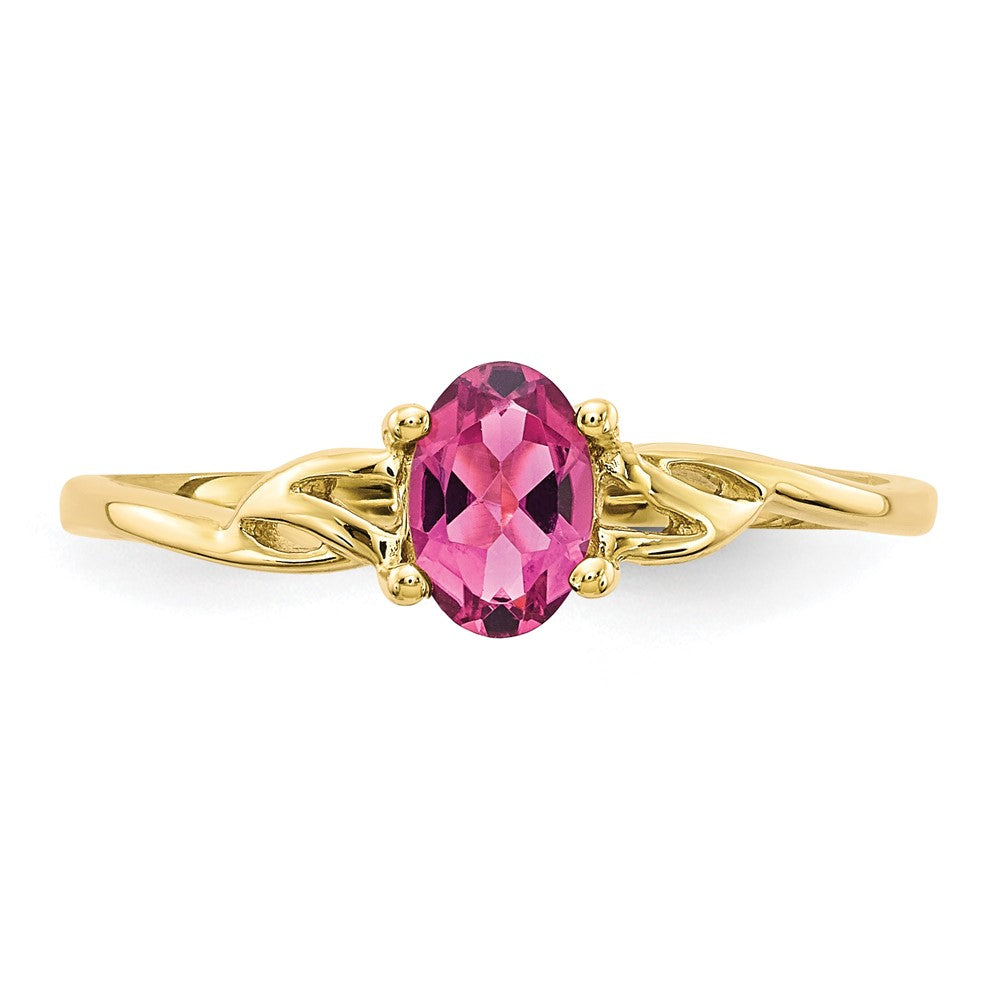 10k Polished Genuine Pink Tourmaline Birthstone Ring