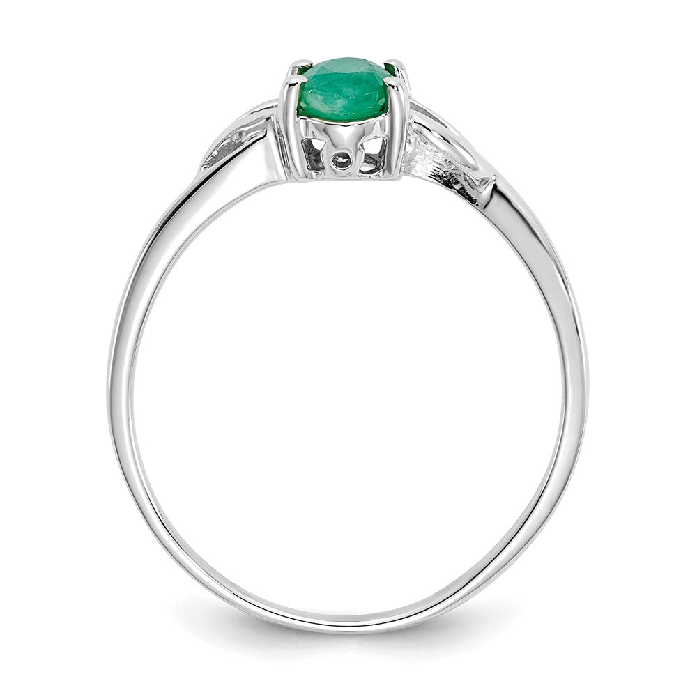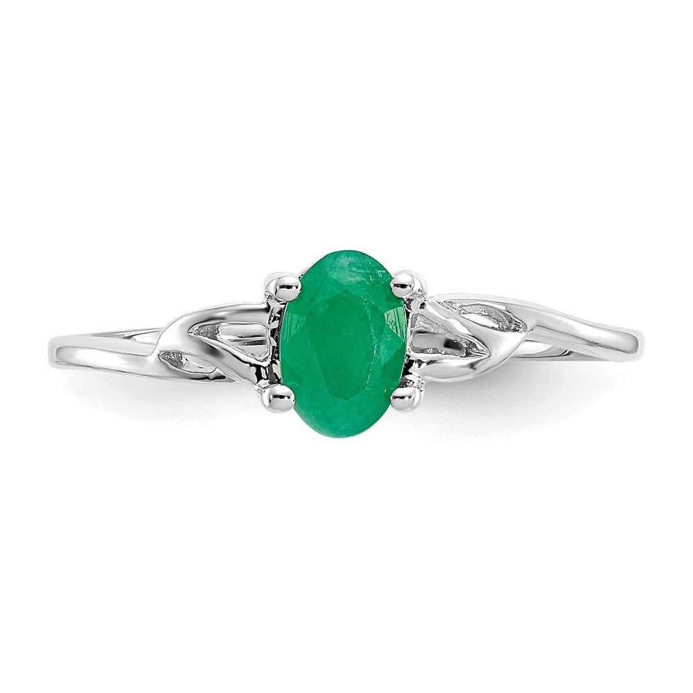 10k White Gold Polished Genuine Emerald Birthstone Ring