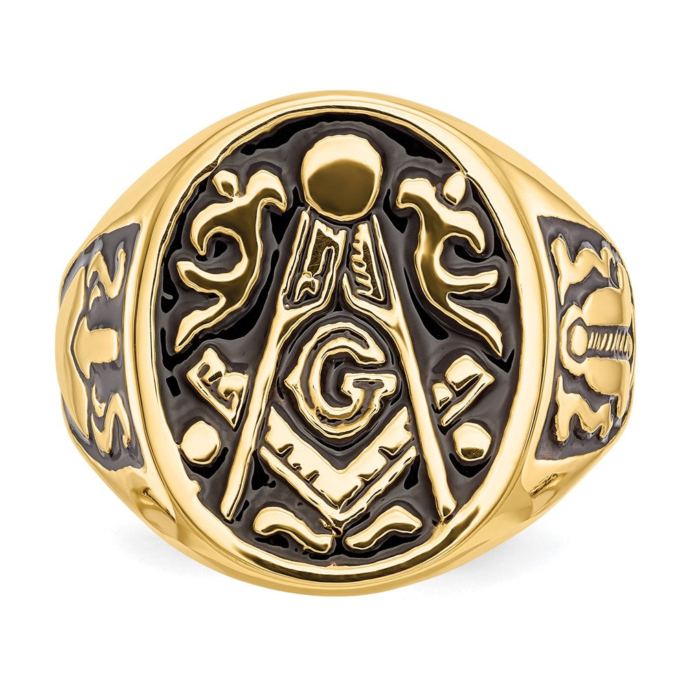 10k Men's Polished and Grooved with Black Enamel Masonic Ring
