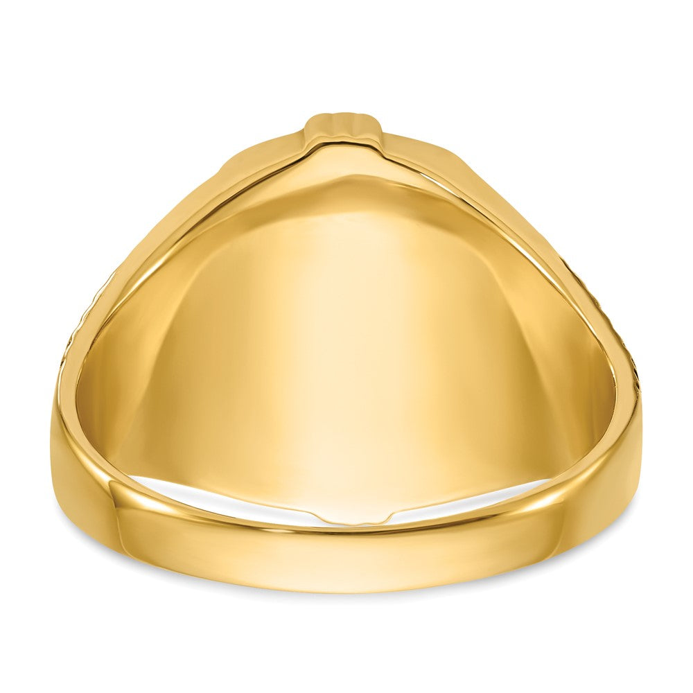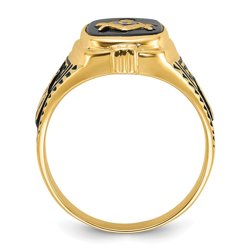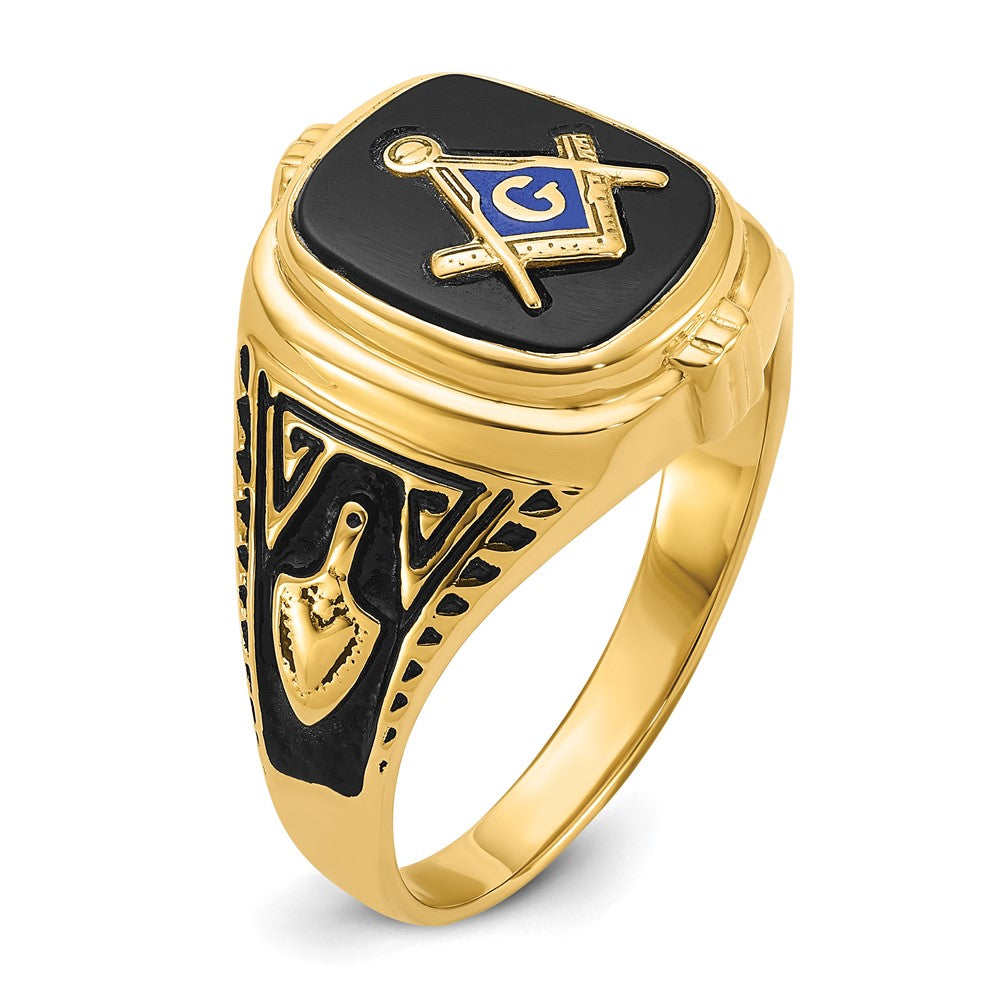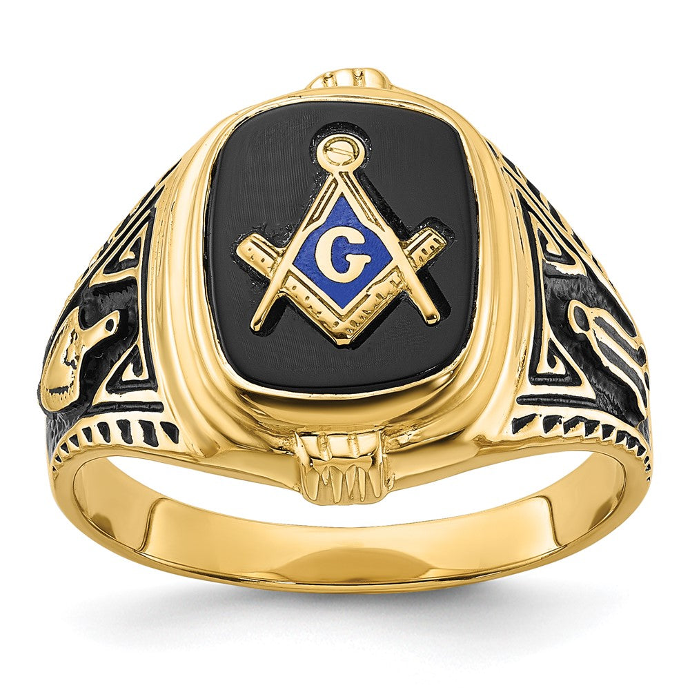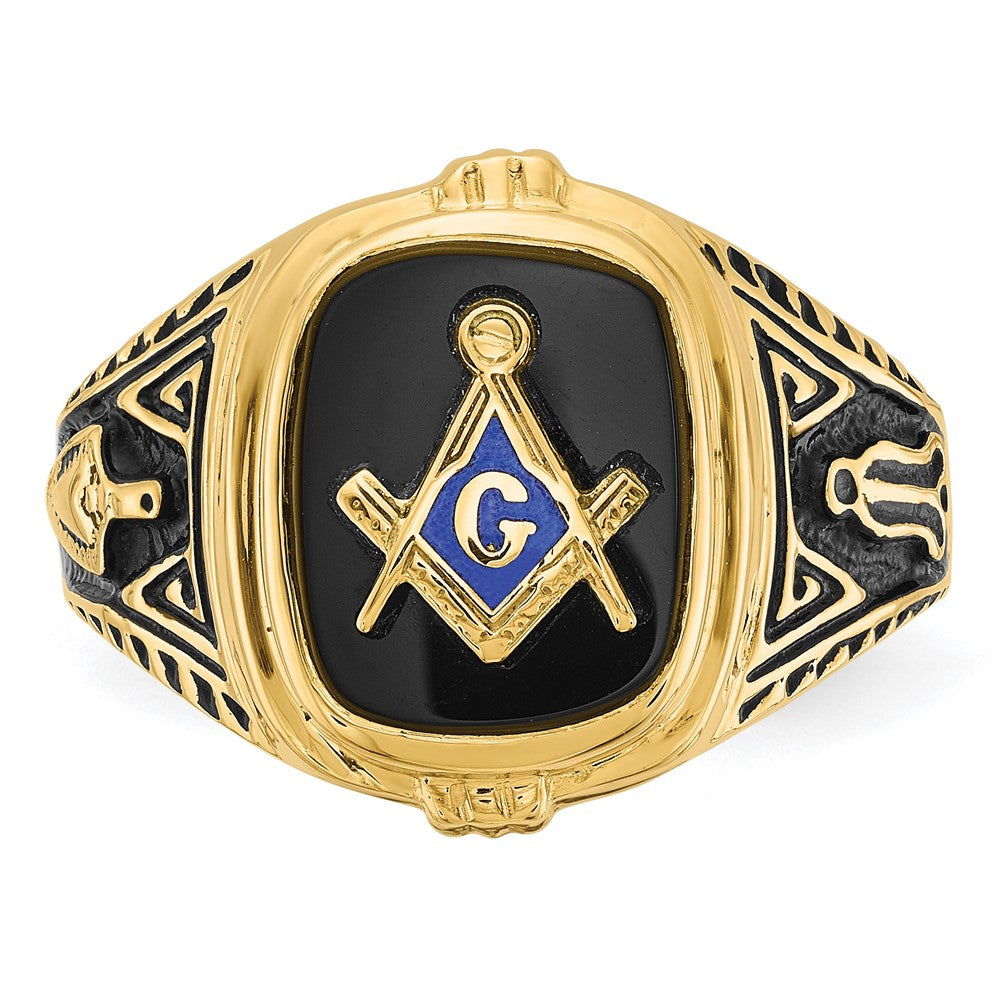 10k Men's Polished, Antiqued and Textured with Onyx Masonic Ring