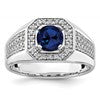IBGoodman 14k White Gold 1/2 carat Lab Grown Diamond VS/SI+ G+ and Created Blue Sapphire Complete Men's Ring