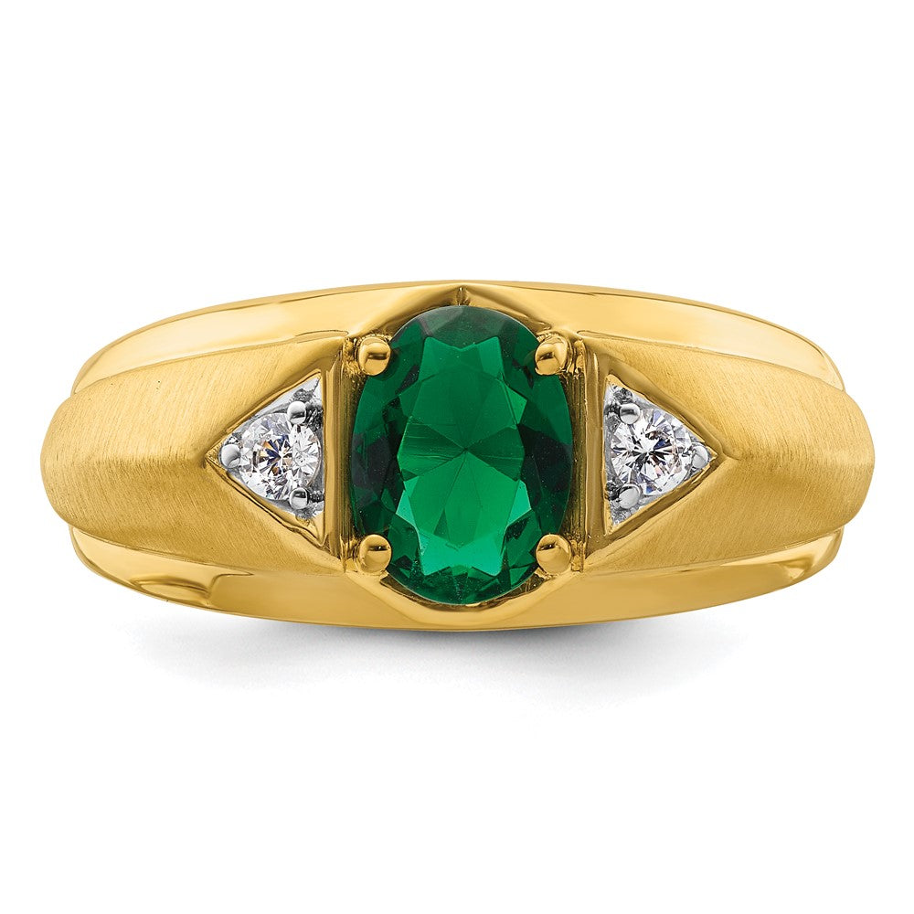 IBGoodman 14k 1/10 carat Lab Grown Diamond VS/SI+ G+ and Created Emerald Complete Men's Ring
