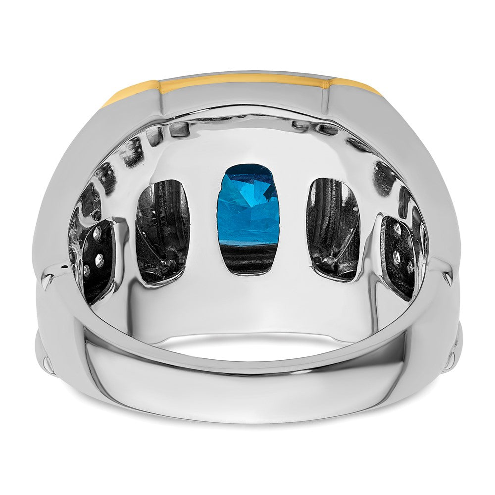 IBGoodman 14k Two-Tone 3/4 carat Lab Grown Diamond VS/SI+ G+ and Blue Topaz Complete Men's Ring