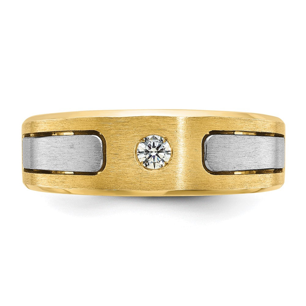 10k Two-tone IBGoodman Men's Polished and Satin Diamond Complete Ring
