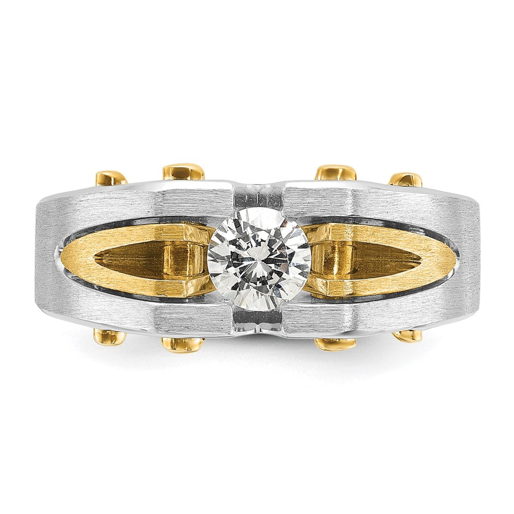 10k Two-tone IBGoodman Men's Polished and Satin Diamond Complete Ring