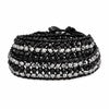 Black Aurora Borealis/Grey Crystal Bead/Leather Multi-wrap Bracelet