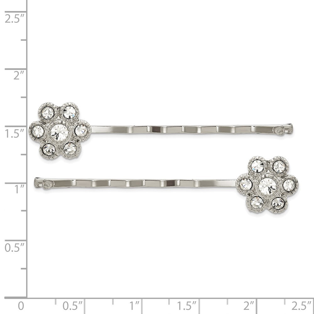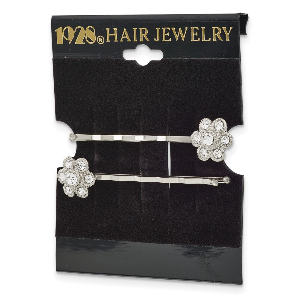 1928 Jewelry Set of 2 Silver-tone Clear Crystal Flower Hairpins