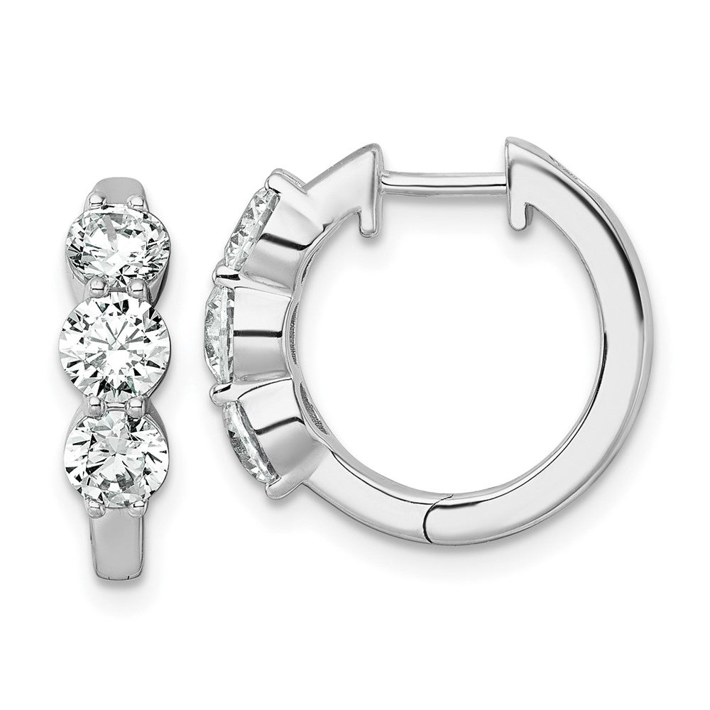 True Origin 14K White Gold 1 7/8 carat Lab Grown Diamond VS+ F+ Three Stone Hinged Hoop Complete Earrings