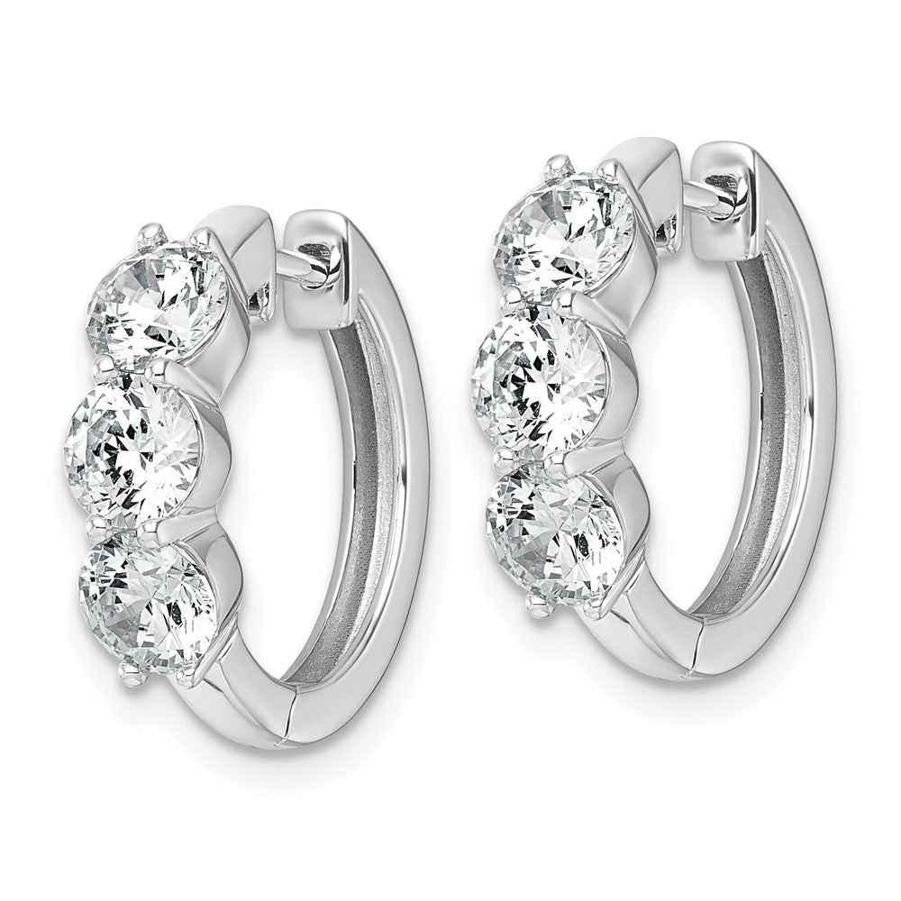 True Origin 14K White Gold 3 carat Lab Grown Diamond VS+ F+ Three Stone Hinged Hoop Complete Earrings