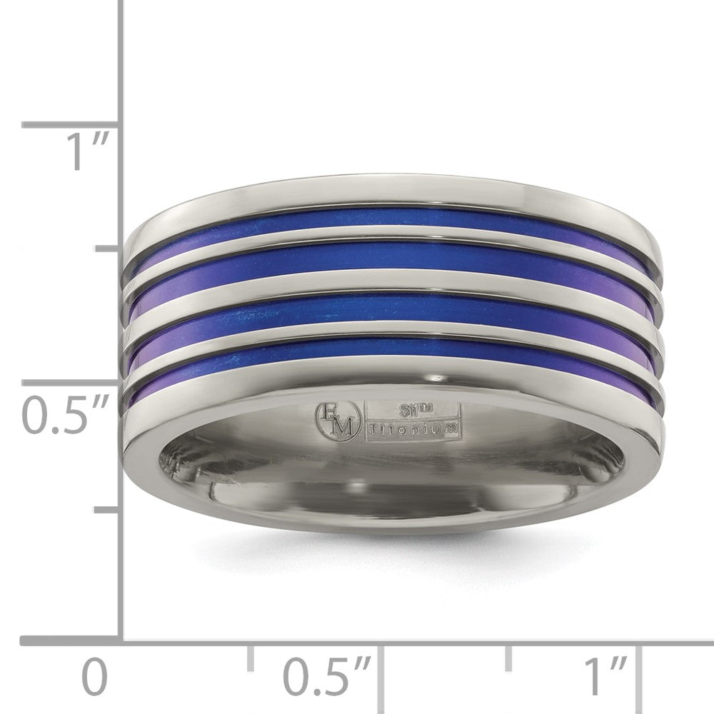 Edward Mirell Titanium with Blue Anodized Grooves Flat 10mm Band