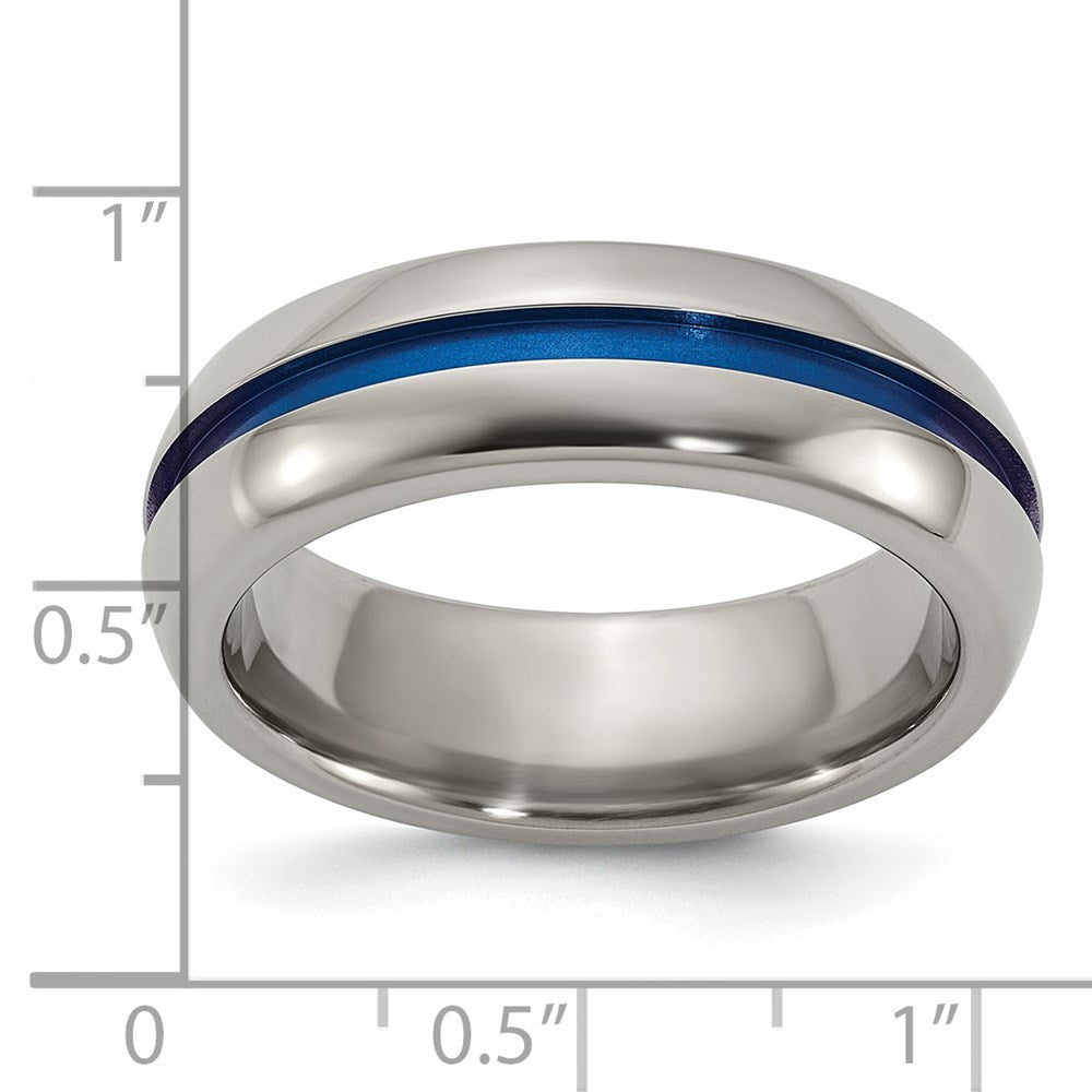 Edward Mirell Titanium with Blue Anodized Center Stripe Domed 7mm Band