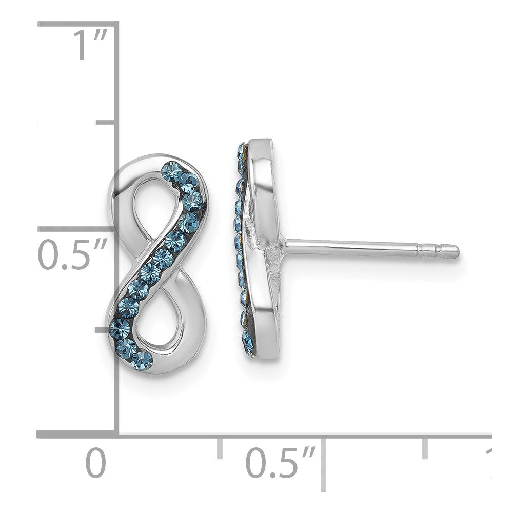 Sterling Silver Rhodium-Plated Polished Blue Crystal Eternity Post Earrings