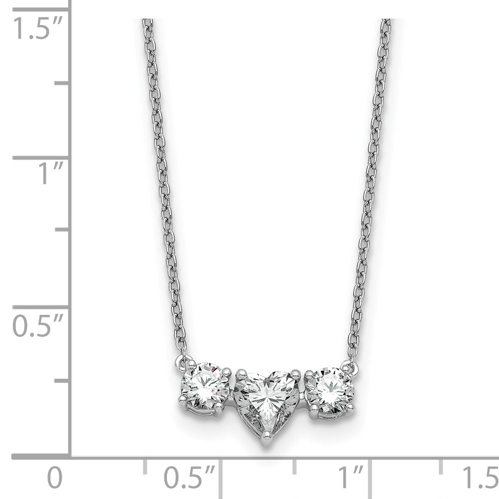 14k White Gold 1 3/8 carat Lab Grown Diamond VS/SI+ G+ Complete 16 inch Three Stone Heart Center Necklace