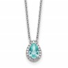 Pure Serenity 14k White Gold 1/6 carat Lab Grown Diamond VS/SI+ G+ and Lab Created Paraiba 18 inch Oval Halo Pendant Necklace
