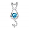10k White Gold Blue Topaz and Diamond Cat Pendant