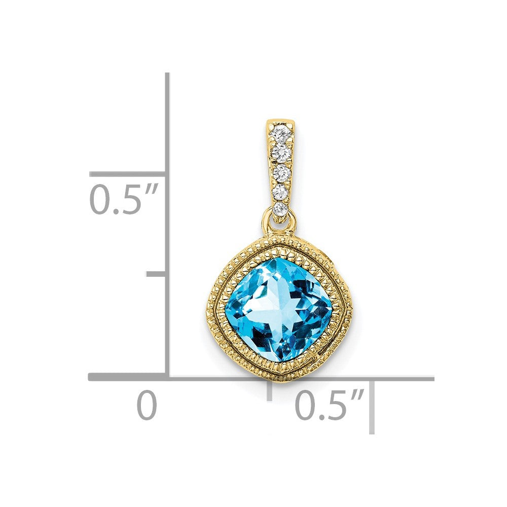10k Cushion Blue Topaz and Diamond Pendant