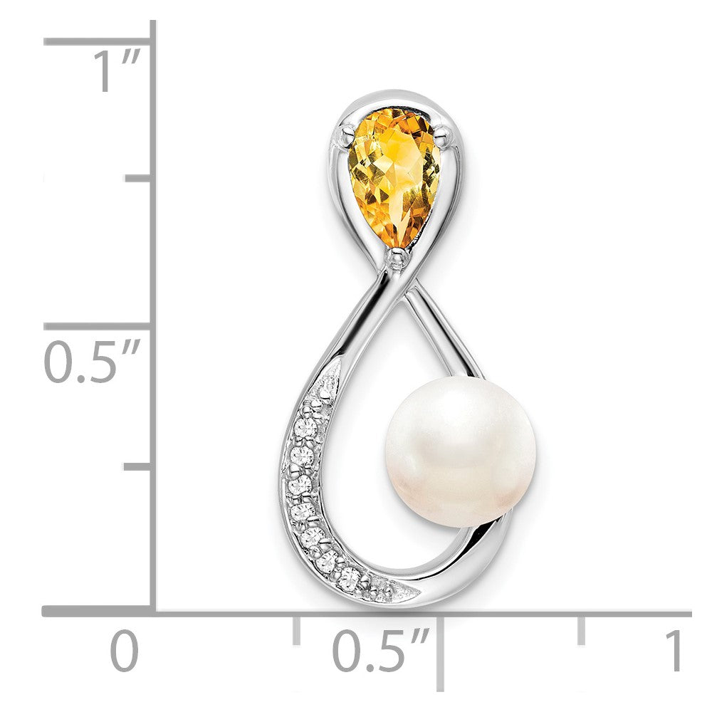 10k White Gold Citrine/FWC Pearl/Diamond Infinity Chain Slide