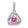 14k White Gold 4mm Round October/Pink Tourmaline Triangle Pendant