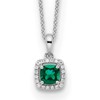 10k White Gold 1/10 carat Lab Grown Diamond VS/SI+ G+ and Created Emerald Complete 18 inch Pendant Necklace