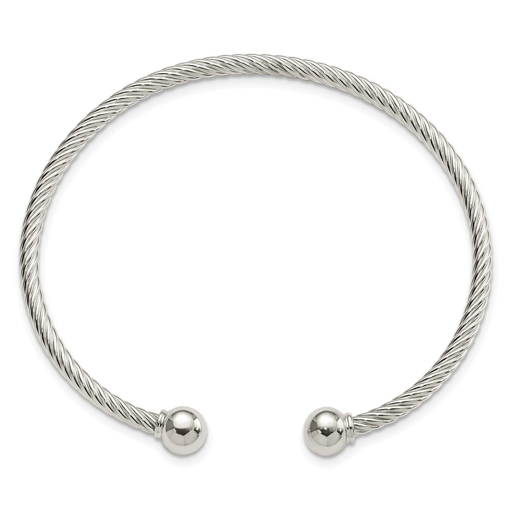 Sterling Silver Polished Twisted w/1 Thread Ball Cuff Bangle