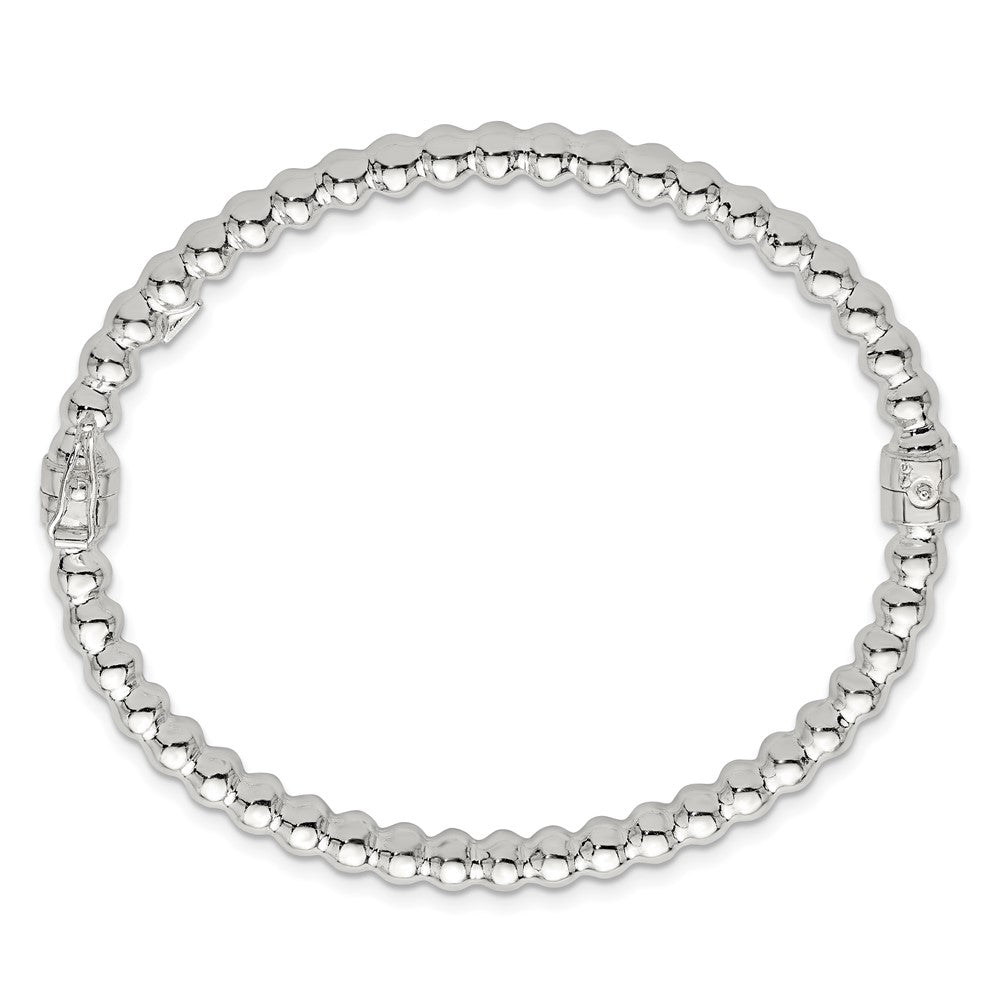 Sterling Silver Polished Beaded Design 5.00mm Hinged Bangle