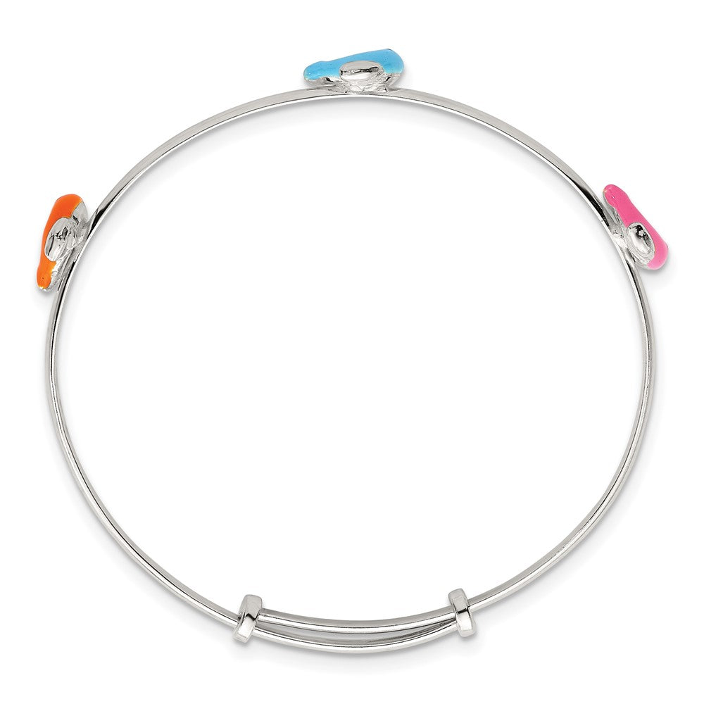 Sterling Silver Blue/Pink/Black Enamel Dolphins Childrens Expandable Slip-on Bangle