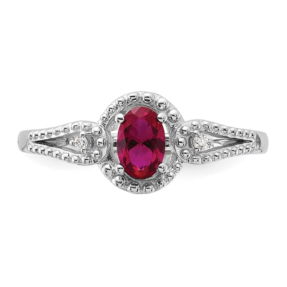 Sterling Silver Rhodium-plated Created Ruby & Diam. Ring