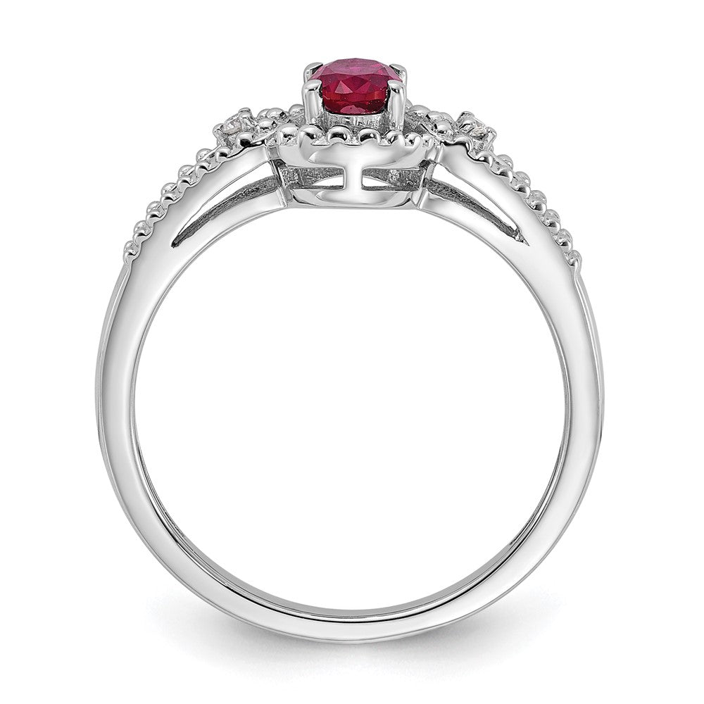Sterling Silver Rhodium-plated Created Ruby & Diam. Ring
