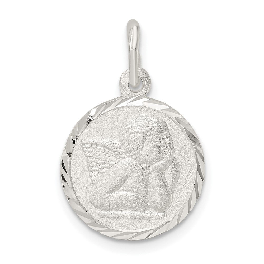 Sterling Silver Polished Satin and D/C Cherub Circle Charm