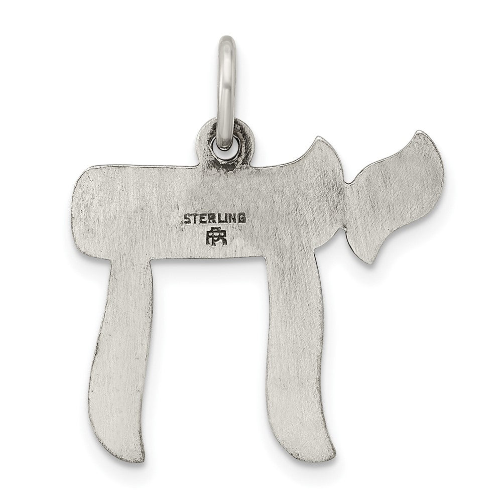 Sterling Silver Solid Antiqued and Textured Chai Symbol Pendant