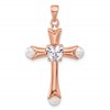Sterling Silver Rose-tone Heart CZ and Synthetic Pearl Cross Pendant