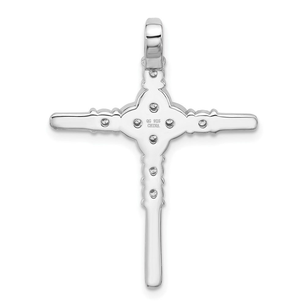Sterling Silver Rhodium-plated Polished Flower CZ Cross Chain Slide