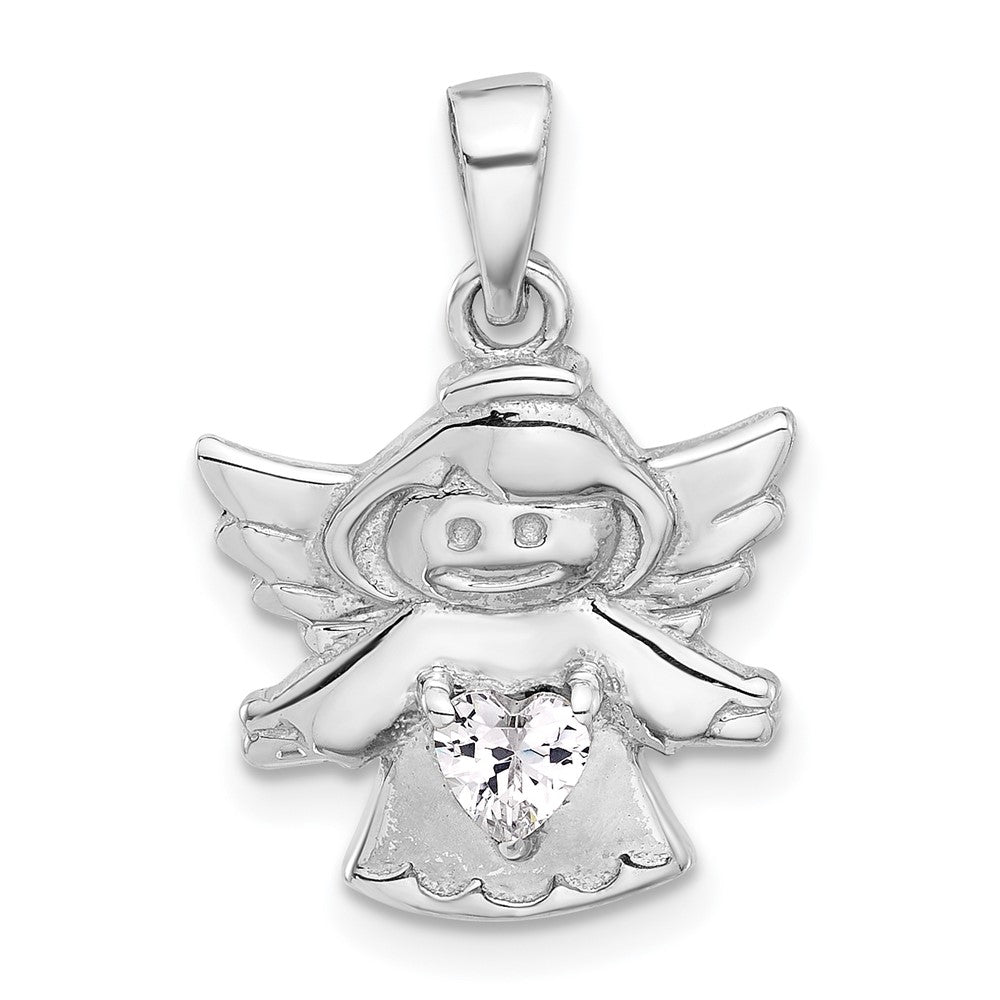 Sterling Silver Rhodium-plated Heart CZ Angel Pendant