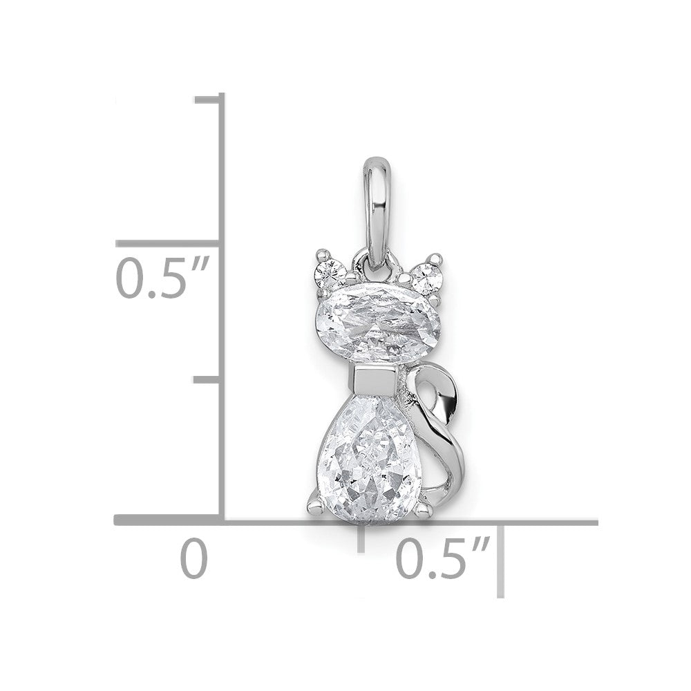Sterling Silver Rhodium-plated White CZ Cat Pendant