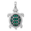 Sterling Silver White and Black Rhodium-plated White and Green CZ Turtle Pendant