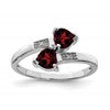 Sterling Silver Rhodium Garnet & Diamond Heart Ring