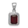 Sterling Silver Rhodium Emerald-cut Garnet & Diamond Pendant