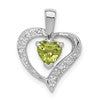 Sterling Silver Rhodium Plated Peridot and Diamond Heart Pendant