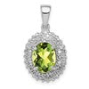 Sterling Silver Rhodium Plated Peridot and Diamond Pendant