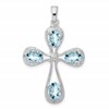 Sterling Silver Rhodium-plated Aquamarine & Diamond Cross Pendant