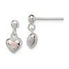 Sterling Silver Polished Pink Enamel Flower Heart Children's Post Dangle Earrings