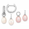 Sterling Silver Rhodium-plated 7-8mm Pink and White Rice Freshwater Cultured Pearl and CZ Interchangeable Post Earrings Set