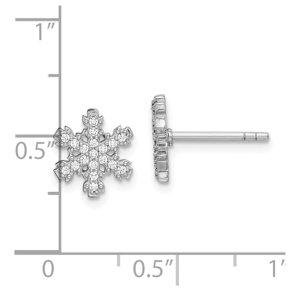 Sterling Silver Rhodium-plated CZ Snowflake Post Earrings