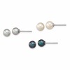 Sterling Silver Rhodium-plated 6-7mm Black, White and Grey Round Freshwater Cultured Pearl Set of 3 Post Earrings
