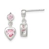 Sterling Silver Polished Pink Heart CZ Post Dangle Earrings