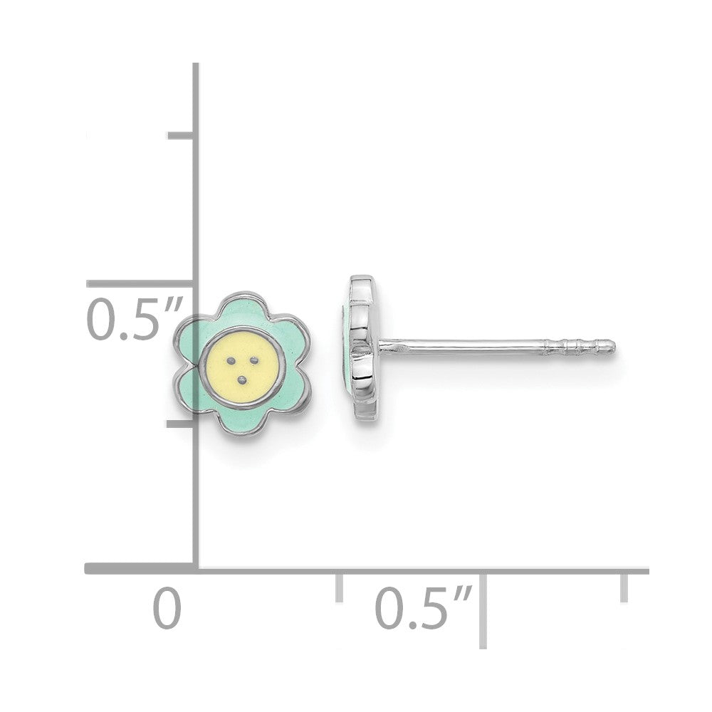 Sterling Silver Rhodium-plated Enamel Flower Children's Post Earrings