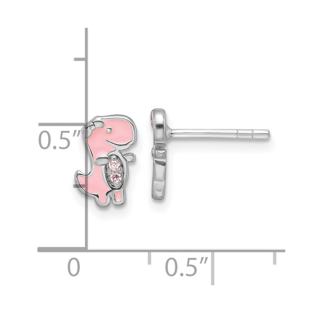 Sterling Silver RH-pltd Pink CZ & Enamel Dinosaur Children's Post Earrings